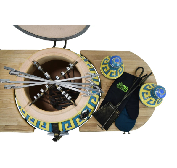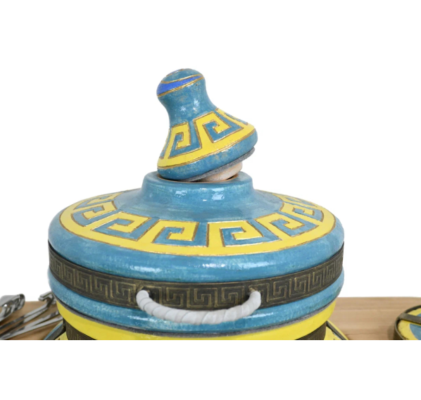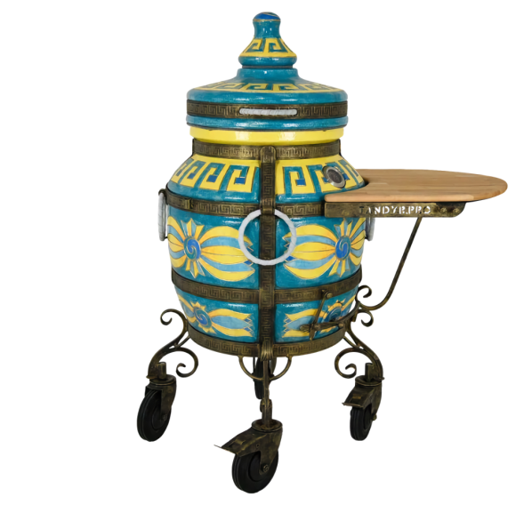 Нарядный тандыр "ЭКОтандыр-Эллада" выделяется узнаваемым древнегреческим узором меандр, который художники-керамисты нарисовали на крышке и чуть ниже горловины. Яркие цветы на боках тандыра добавляют ощущения праздника. В любую погоду как нельзя кстати будут запечённые блюда из разных сортов мяса, лепёшки, самса, овощи и грибы. Оригинальный вкус и аромат им придаст приготовление в эксклюзивном тандыре "ЭКОтандыр-Эллада" с его стенками толщиной 8 см, которые отлично сохраняют жар и равномерно его распределяют. Именно в нём Вы запечёте сытные и красивые блюда, которые восхитят Ваших гостей идеальным балансом вкуса, сочности и аромата.