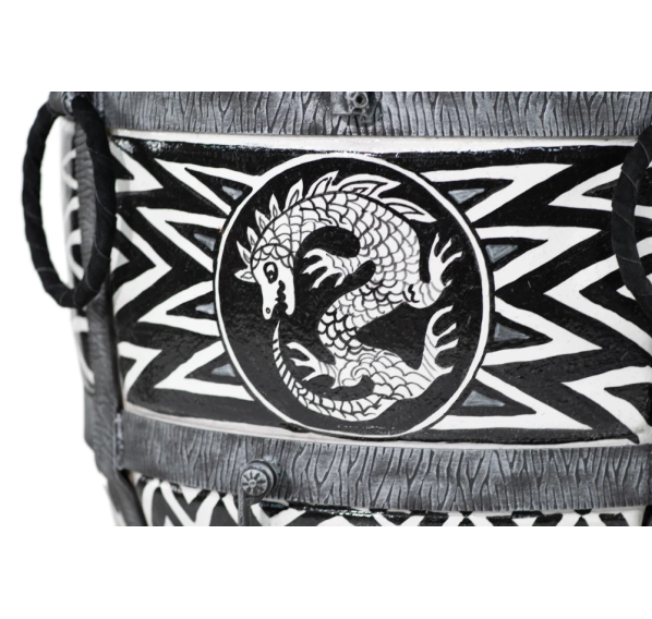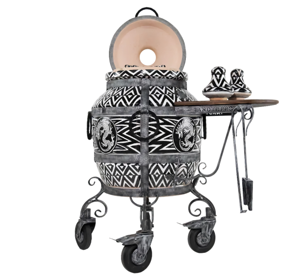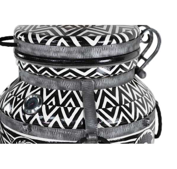 Эксклюзивный тандыр "ЭКОтандыр-Этнос" создаётся по технологии "графика". Художники-керамисты покрывают подготовленный тандыр особой глазурью. После наносят монохромный узор с африканскими мотивами, а затем обжигают в печи. Зигзагообразный узор, который покрывает тандыр "ЭКОтандыр-Этнос", создаёт визуальный ритм, а стилизованные птицы по бокам тандыра добавляют его облику этнического своеобразия. Вы словно оказываетесь в жаркой Африке, где готовите свои шедевральные блюда, которые покоряют всех, кому довелось их попробовать. Очутитесь в этом мире пряностей, головокружительных ароматов, манящей золотистой корочки Ваших фирменных блюд. Равномерный жар тандыра и благоухание специй творят настоящую африканскую магию. Поэтому выберите собственный тандыр "ЭКОтандыр-Этнос" — это идеальное сочетание визуальной эстетики и вкусового совершенства блюд, которые в нём запекаются.