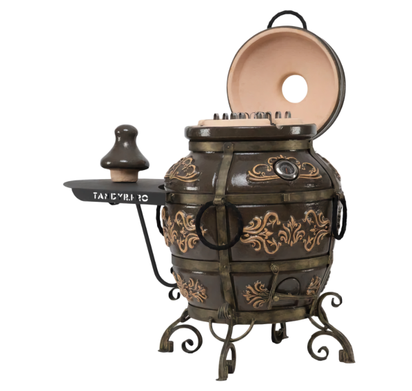 Тандыр покрыт глянцевой глазурью с орнаментом.