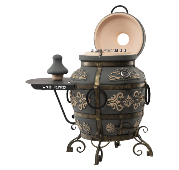 Тандыр "ЭКОтандыр-Гранд"! Можно было бы дальше и не продолжать. Всё самое лучшее, что пожелали требовательные гурманы, компания "ЭКОтандыр" воплотила в тандыре "Гранд". Сам корпус тандыра сделан в классической форме кувшина, при этом горловина тандыра "ЭКОтандыр-Гранд" достигает внушительных 32 см. В толстостенном корпусе тандыра установлен большой наглядный термометр, и у хозяев этого тандыра никогда не будет сомнений относительно правильной температуры приготовления многочисленных блюд. Четыре ручки на корпусе для переноски тандыра тоже подчеркивают уверенность и основательность тандыра "ЭКОтандыр-Гранд". В комплекте 16 шампуров со специальными зажимами, для того чтобы обладатель тандыра всегда имел возможность готовить много и вкусно. Большой тандыр "ЭКОтандыр-Гранд" и этим всё сказано.