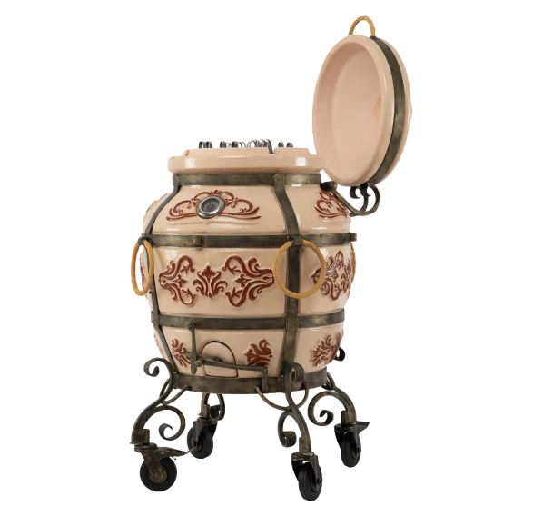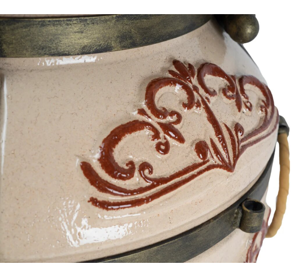 Тандыр покрыт глянцевой глазурью с орнаментом.