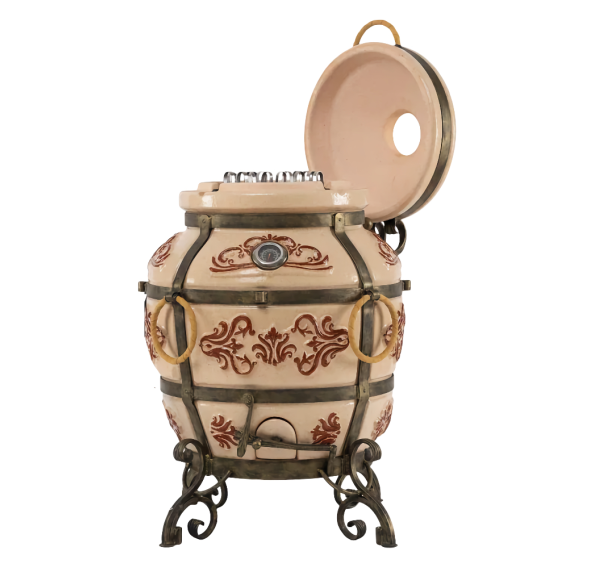 Тандыр покрыт глянцевой глазурью с орнаментом.
