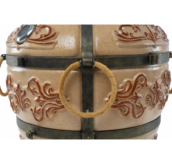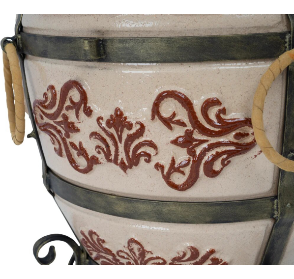 Тандыр покрыт глянцевой глазурью с орнаментом.