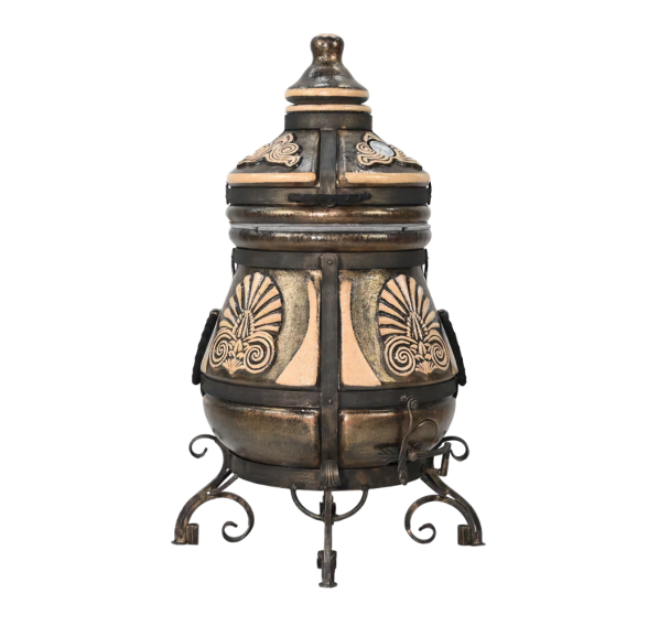 Тандыр покрыт глянцевой глазурью с орнаментом.