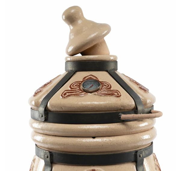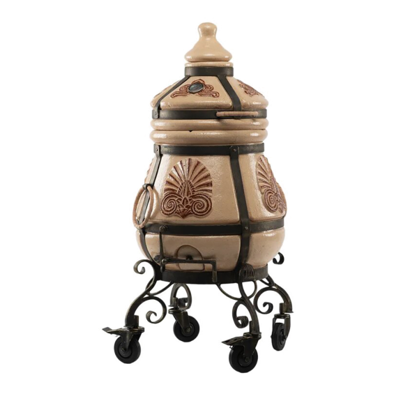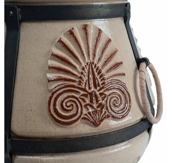 Тандыр покрыт глянцевой глазурью с орнаментом.