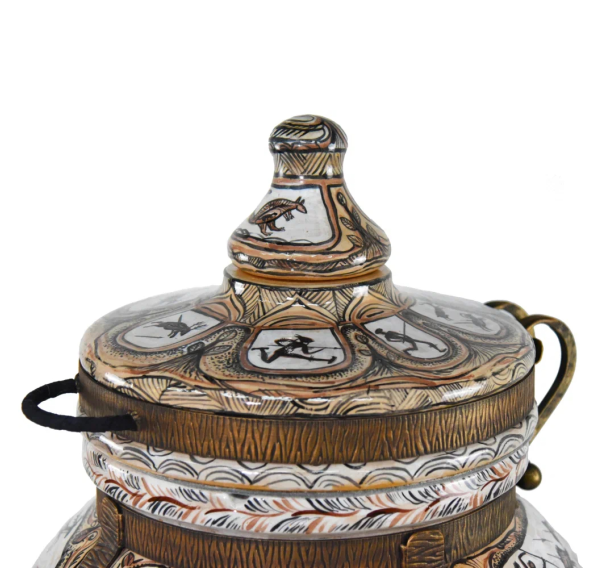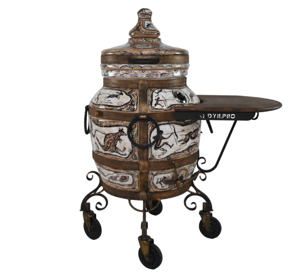 Тандыр покрыт глянцевой глазурью с орнаментом.
