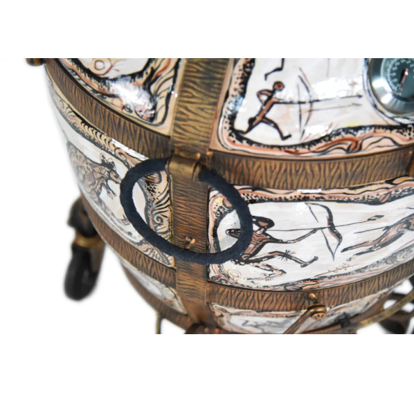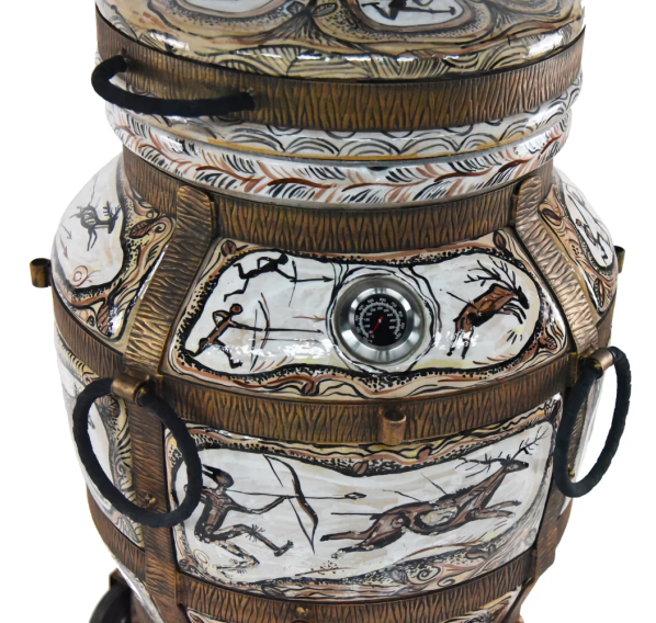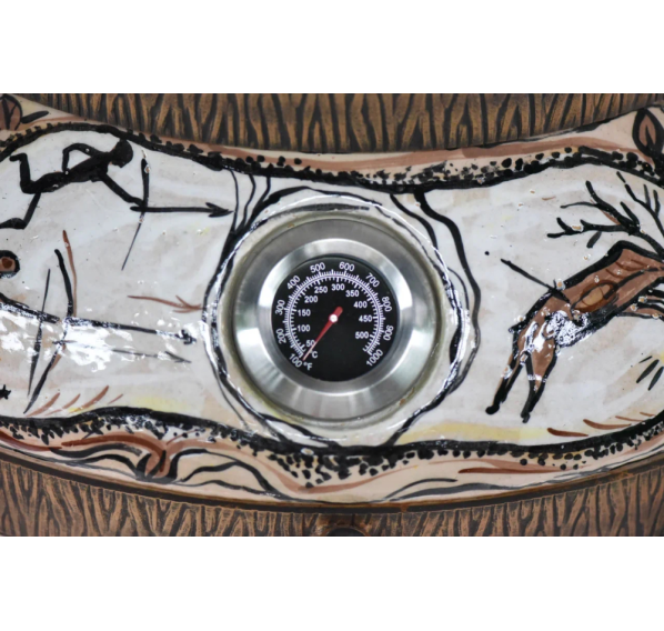 Вручную расписанный эксклюзивный тандыр "ЭКОтандыр-Охота" создан по технологии "графика". Он словно покрыт наскальными росписями: стилизованные фигурки аборигенов Австралии охотятся с луками на кенгуру и оленей. Тематика рисунков словно говорит: в тандыре "ЭКОтандыр-Охота" Вы лучше всего приготовите восхитительные мясные блюда. Они не подгорят, не пересушатся, а, наоборот, останутся мягкими и сочными изнутри и покроются аппетитной корочкой снаружи.