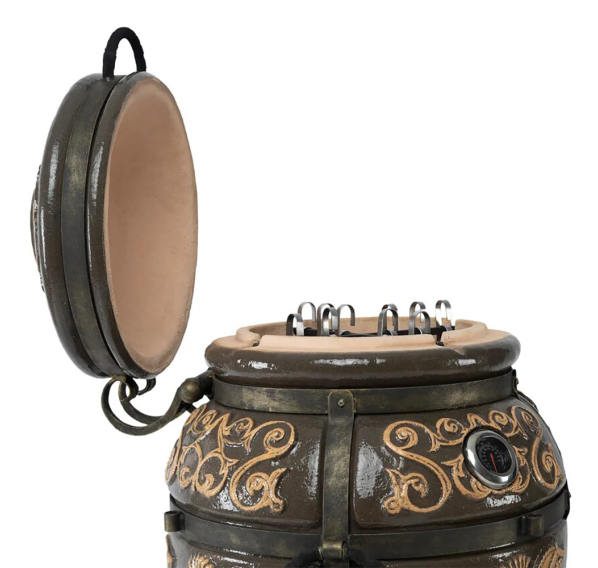 Тандыр покрыт глянцевой глазурью с орнаментом.