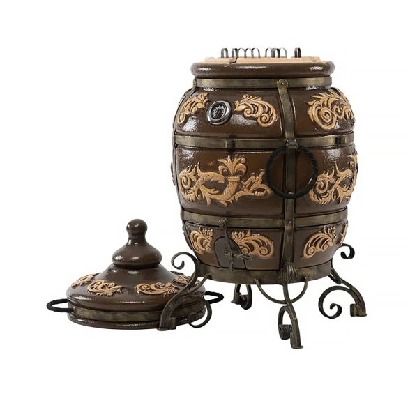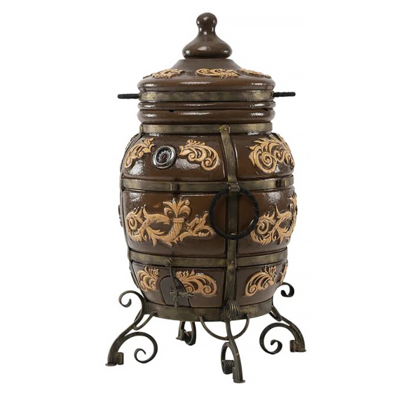 Тандыр покрыт глянцевой глазурью с орнаментом.