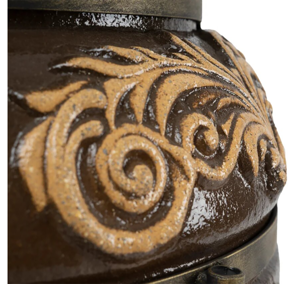 Тандыр покрыт глянцевой глазурью с орнаментом.