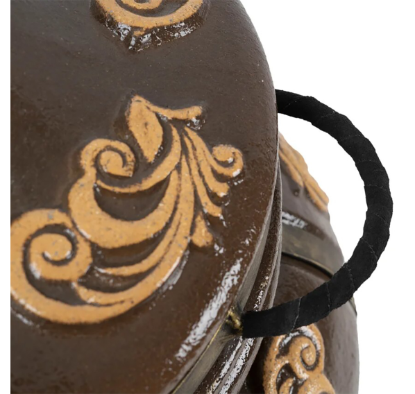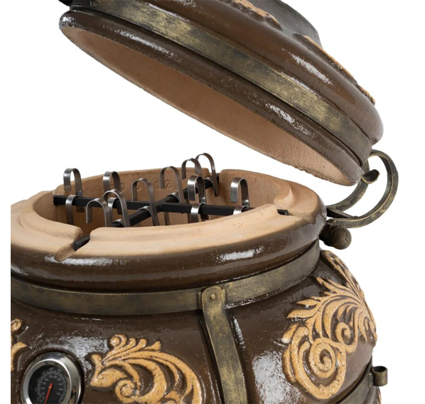 Тандыр покрыт глянцевой глазурью с орнаментом.