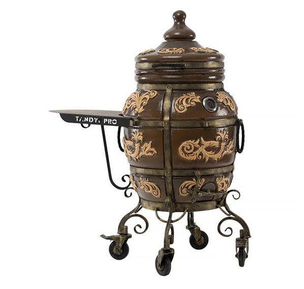 тандыр, шампуры, кочерга, совок, колосник, приспособление для подвешивания шампуров, термометр, столик, колёса - 4 шт.