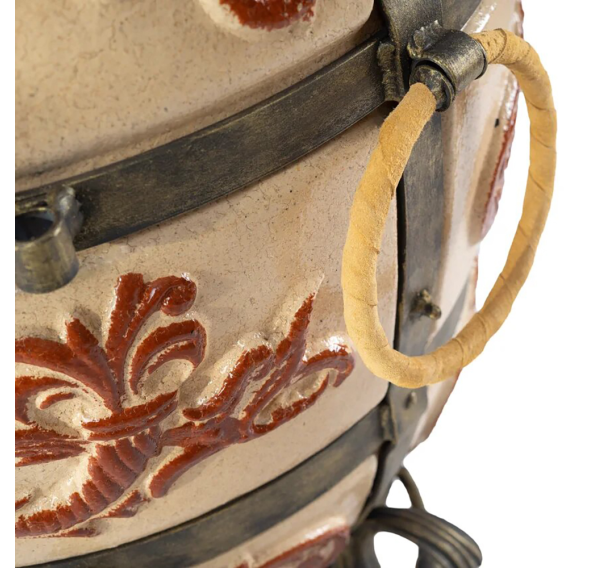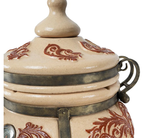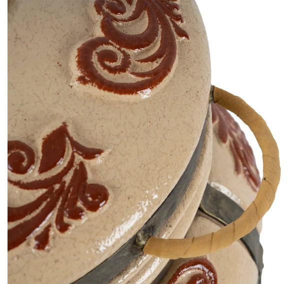 Тандыр покрыт глянцевой глазурью с орнаментом.