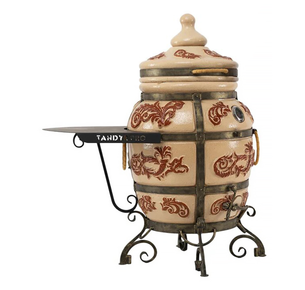 Тандыр покрыт глянцевой глазурью с орнаментом.