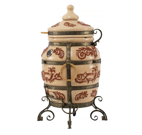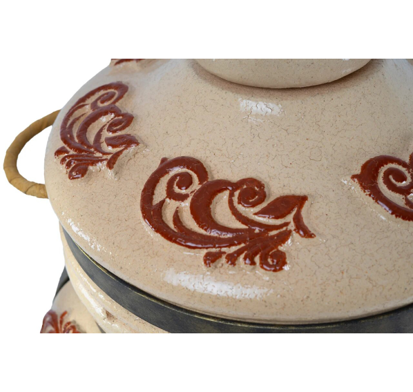 Тандыр покрыт глянцевой глазурью с орнаментом.