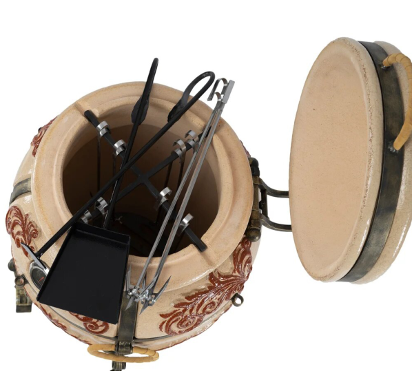 тандыр, шампуры, кочерга, совок, колосник, приспособление для подвешивания шампуров, термометр