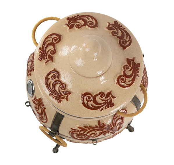 Тандыр покрыт глянцевой глазурью с орнаментом.
