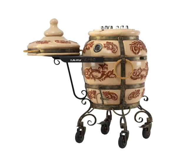 Тандыр "ЭКОтандыр-Персидский" со столиком, на колёсах, слоновая кость