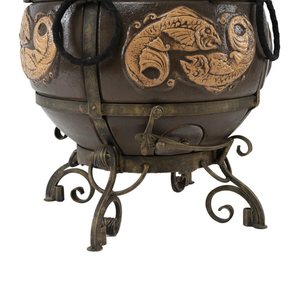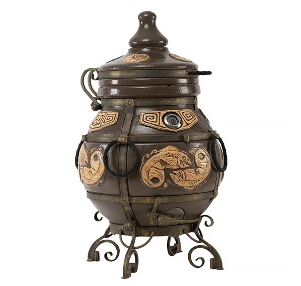 Объёмный, удобный, красивый! Тандыр "ЭКОтандыр-Шар" — это одна из удачных моделей тандыров, так как распределение тепла от стенок внутри происходит более равномерно. Механизм откидывания большой крышки уже отработанная и оправданная опция, широкая горловина для любых экспериментов с приготовлениями блюд. В качестве узоров используется стилистически выполненный иероглиф богатства, успеха (удачи) или узор двух рыб символ счастья, успеха, изобилия. В общем тандыр — оберег, не иначе. А как он готовит... Это надо попробовать!