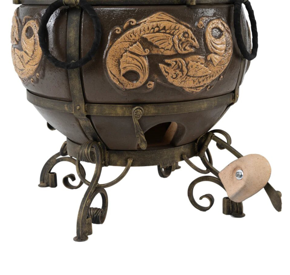 Объёмный, удобный, красивый! Тандыр "ЭКОтандыр-Шар" — это одна из удачных моделей тандыров, так как распределение тепла от стенок внутри происходит более равномерно. Механизм откидывания большой крышки уже отработанная и оправданная опция, широкая горловина для любых экспериментов с приготовлениями блюд. В качестве узоров используется стилистически выполненный иероглиф богатства, успеха (удачи) или узор двух рыб символ счастья, успеха, изобилия. В общем тандыр — оберег, не иначе. А как он готовит... Это надо попробовать!