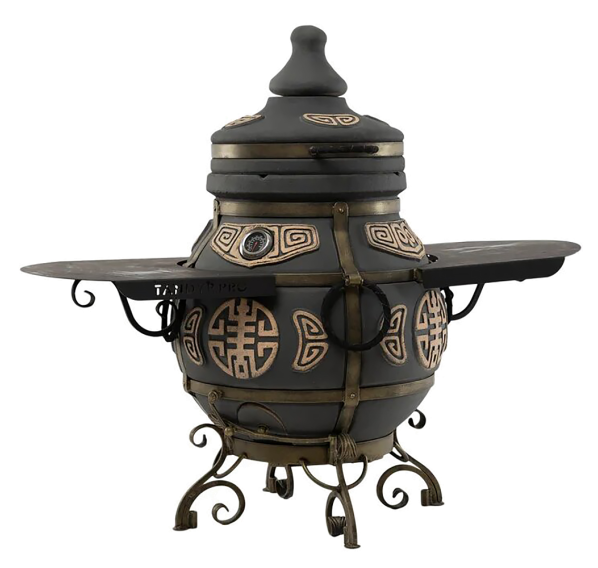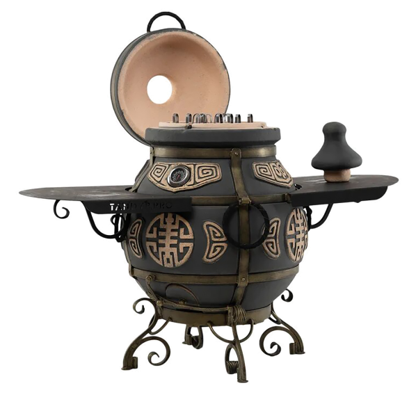 Объёмный, удобный, красивый! Тандыр "ЭКОтандыр-Шар" — это одна из удачных моделей тандыров, так как распределение тепла от стенок внутри происходит более равномерно. Механизм откидывания большой крышки уже отработанная и оправданная опция, широкая горловина для любых экспериментов с приготовлениями блюд. В качестве узоров используется стилистически выполненный иероглиф богатства, успеха (удачи) или узор двух рыб символ счастья, успеха, изобилия. В общем тандыр — оберег, не иначе. А как он готовит... Это надо попробовать!