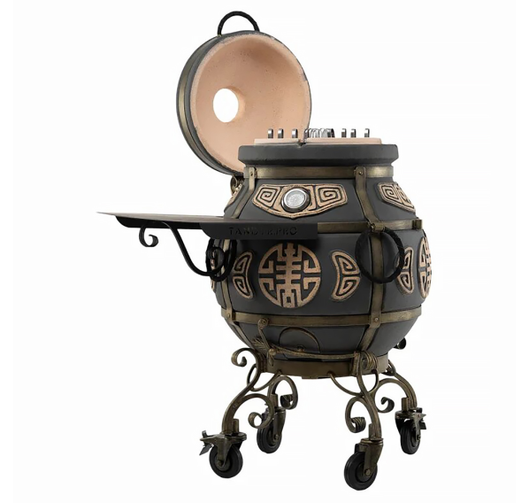 Объёмный, удобный, красивый! Тандыр "ЭКОтандыр-Шар" — это одна из удачных моделей тандыров, так как распределение тепла от стенок внутри происходит более равномерно. Механизм откидывания большой крышки уже отработанная и оправданная опция, широкая горловина для любых экспериментов с приготовлениями блюд. В качестве узоров используется стилистически выполненный иероглиф богатства, успеха (удачи) или узор двух рыб символ счастья, успеха, изобилия. В общем тандыр — оберег, не иначе. А как он готовит... Это надо попробовать!