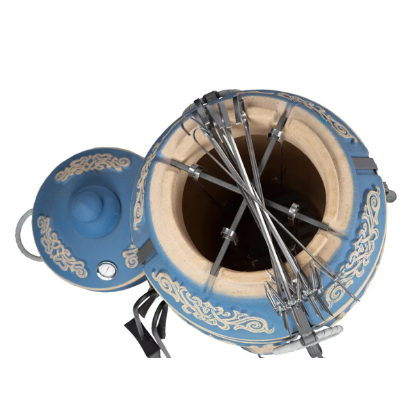 тандыр, шампуры, кочерга, совок, колосник, приспособление для подвешивания шампуров, термометр, жароотсекатель, чехол на тандыр, колёса - 4 шт.