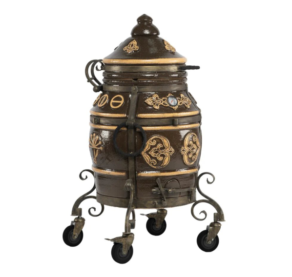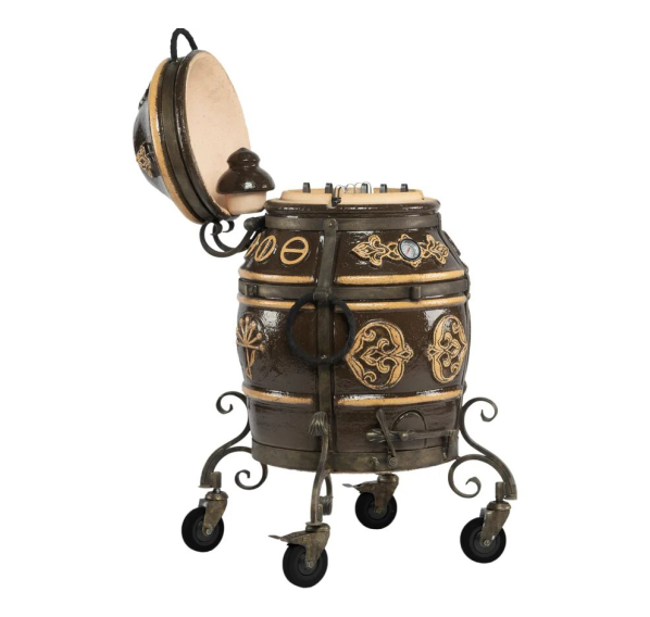 Тандыр покрыт глянцевой глазурью с орнаментом.