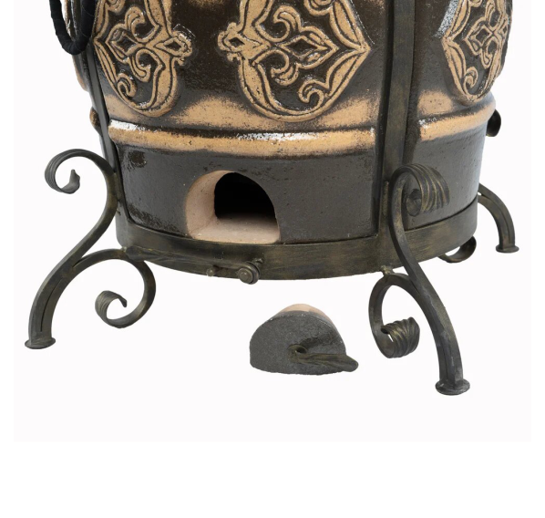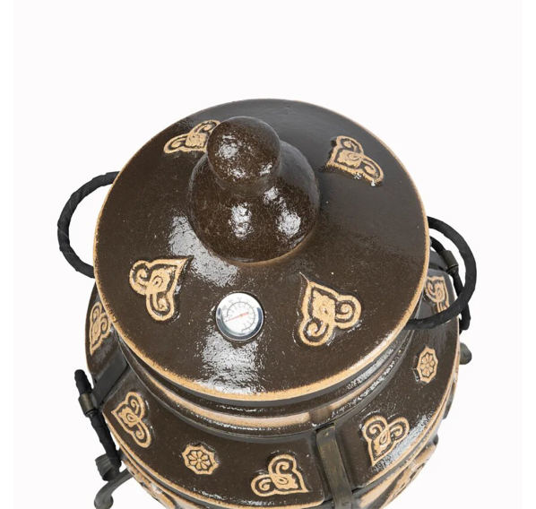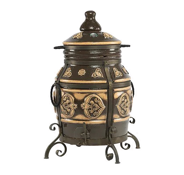 Тандыр покрыт глянцевой глазурью с орнаментом.