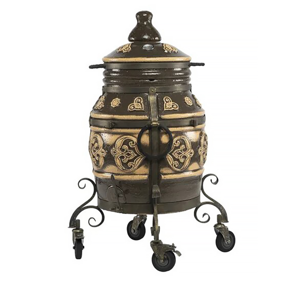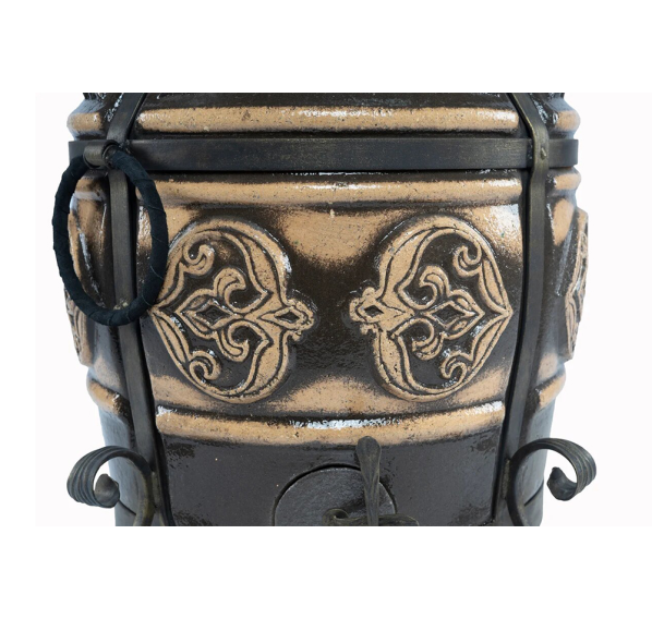 Тандыр покрыт глянцевой глазурью с орнаментом.