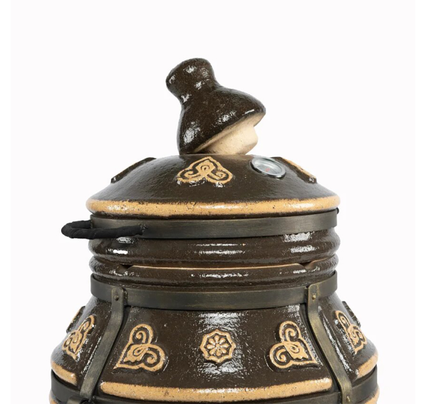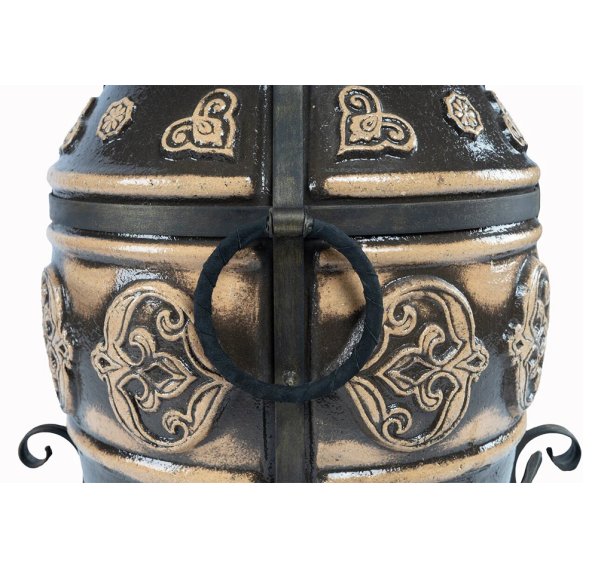 Тандыр покрыт глянцевой глазурью с орнаментом.