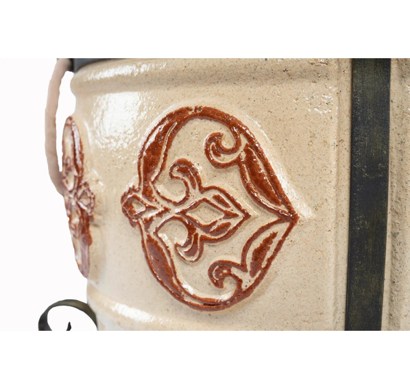 Тандыр покрыт глянцевой глазурью с орнаментом.