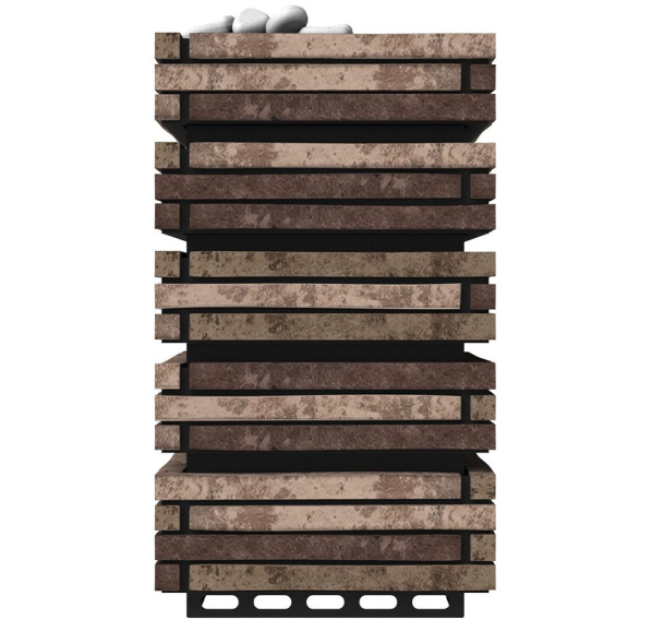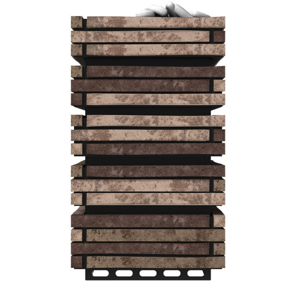 Компактная электрическая каменка модели “W12B” в облицовке из ригельного кирпича от российского бренда Sangens - это ультрасовременный, высокотехнологичный прибор с отличными рабочими характеристиками. Она подходит для установки как в классической парной, так и в финской сауне, вы сами выбираете, какая влажность и температура будут оптимальными. В качестве нагревательного элемента используются энергоблоки - собственная разработка производителя. Они дублируют друг друга, имеют гарантированный срок службы более 5000 тысяч часов, удобны в обслуживании и замене. Такая каменка отлично впишется в любой интерьер - насыщенные оттенки кирпича, варьирующие от бежевого до коричневого, волнообразная поверхности облицовки и сдержанная геометричность прямоугольного корпуса сделают обстановку в вашей парной неповторимой.