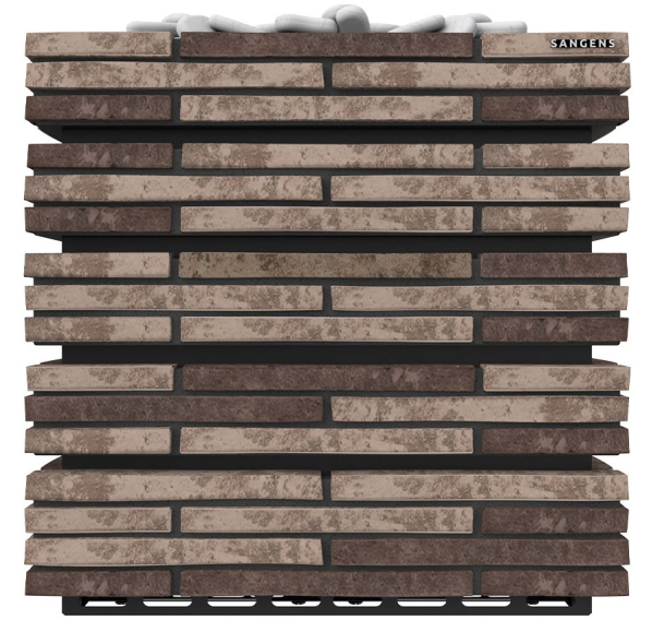 Электрическая каменка модели “W30B” в облицовке из ригельного кирпича от российского бренда Sangens - это ультрасовременный, высокотехнологичный прибор с отличными рабочими характеристиками. Она подходит для установки как в классической парной, так и в финской сауне, вы сами выбираете, какая влажность и температура будут оптимальными. В качестве нагревательного элемента используются энергоблоки - собственная разработка производителя. Они дублируют друг друга, имеют гарантированный срок службы более 5000 тысяч часов, удобны в обслуживании и замене. Такая каменка отлично впишется в любой интерьер - насыщенные оттенки кирпича, варьирующие от бежевого до коричневого, волнообразная поверхности облицовки и сдержанная геометричность прямоугольного корпуса сделают обстановку в вашей парной неповторимой.
