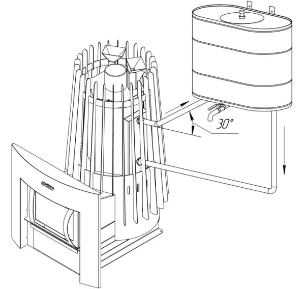 Теплообменник для всей серии банных печей Grill D Cometa Vega. Предназначен для нагрева воды в помещении, оснащенном печью, либо в смежном помещении.