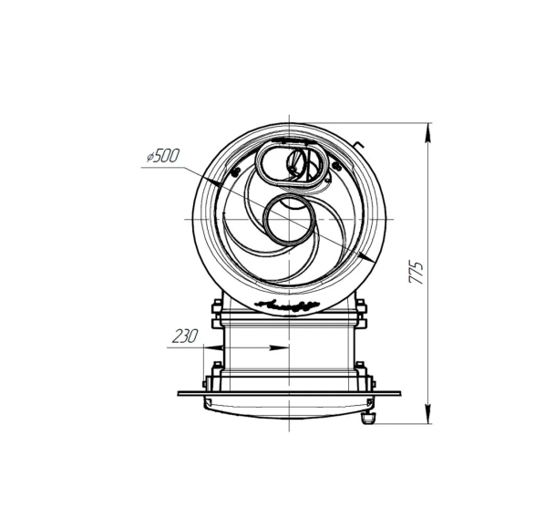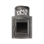 Закрытая каменка сделана из нержавеющей стали 3мм, вода поступает внутрь через встроенную стальную трубку с широкой заливной горловиной. Для доступа к топке предусмотрены специальные технические отверстия, а управлять горением непосредственно из парной удобно через дверцу, которая навешивается справа или слева. Дверца защищена жаростойким стеклом от проверенного японского производителя. Цельнолитая топка с толстыми стенками вмещает дрова большого размера. Паровая пушка внутри закрытой каменки за счет высокой температуры позволяет получить высококачественный чистый пар уже через пол часа после начала топки.