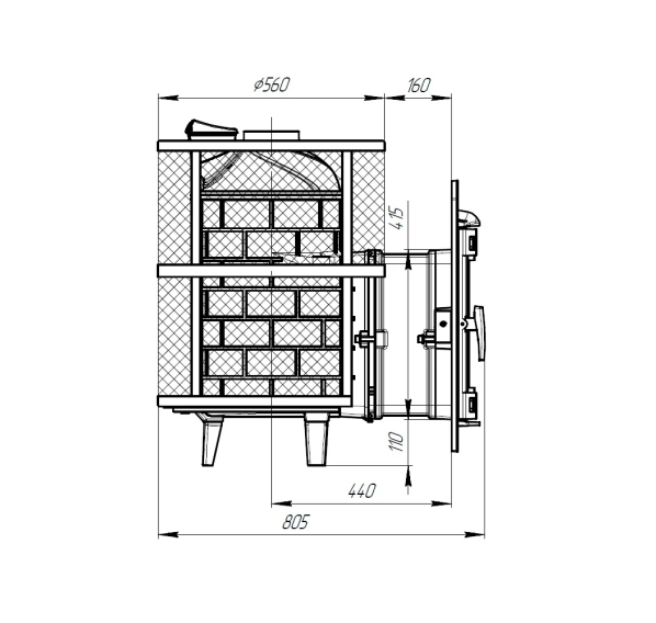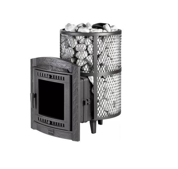 Закрытая каменка сделана из нержавеющей стали, вода поступает внутрь через встроенную стальную трубку с широкой заливной горловиной. Для доступа к топке предусмотрены специальные технические отверстия, а управлять горением непосредственно из парной удобно через дверцу, которая навешивается справа или слева. Дверца защищена жаростойким стеклом от проверенного японского производителя. Цельнолитая топка с толстыми стенками вмещает дрова большого размера. Паровая пушка внутри закрытой каменки за счет высокой температуры позволяет получить высококачественный чистый пар уже через пол часа после начала топки.
