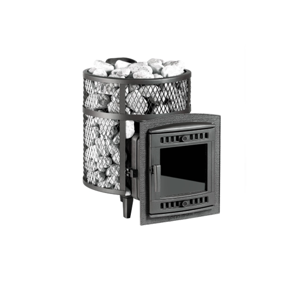 Печь отлита из высококачественного чугуна, каменки - из нержавеющей стали. Она опирается на три массивные и прочные ножки. Большая дверца с жаропрочным стеклом Neoceram, которую, благодаря удобному креплению, можно установить с удобной для открывания стороны. Стекло не запотевает и не покрывается нагаром, позволяя контролировать процесс горения. Внешняя каменка заполняется природным камнем на ваше усмотрение (желательно камни с высокой плотностью) , а во внутреннюю рекомендуется укладывать пирамидки из нержавеющей стали.