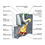 Печь имеет высокий КПД и обеспечивает быстрый и равномерный прогрев помещения за счет продуманной конструкции топки и системы дымовых каналов.