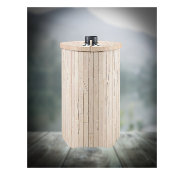 Облицовка печи – ламели из натурального камня, установленные вокруг всего корпуса. Камень блокирует распространение инфракрасного излучения, защищает парильщиков от случайного прикосновения к раскаленному металлу топки. Производство ламелей ведется по собственной запатентованной технологии завода Vöhringer.