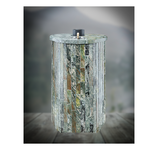 Облицовка печи – ламели из натурального камня, установленные вокруг всего корпуса. Камень блокирует распространение инфракрасного излучения, защищает парильщиков от случайного прикосновения к раскаленному металлу топки. Производство ламелей ведется по собственной запатентованной технологии завода Vöhringer.