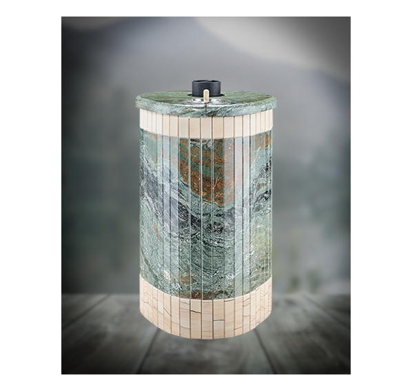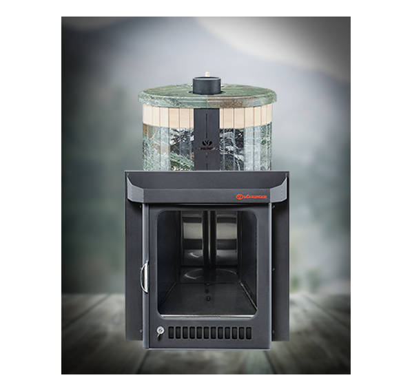 Облицовка печи – ламели из натурального камня, установленные вокруг всего корпуса. Камень блокирует распространение инфракрасного излучения, защищает парильщиков от случайного прикосновения к раскаленному металлу топки. Производство ламелей ведется по собственной запатентованной технологии завода Vöhringer.