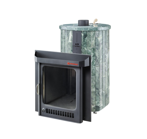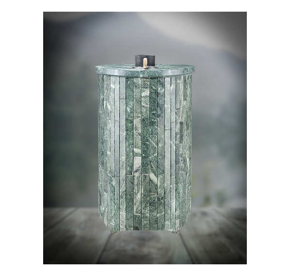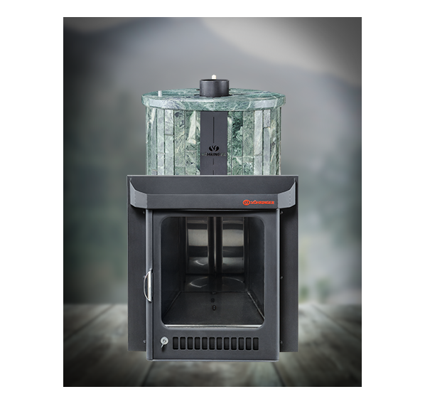 Облицовка печи – ламели из натурального камня, установленные вокруг всего корпуса. Камень блокирует распространение инфракрасного излучения, защищает парильщиков от случайного прикосновения к раскаленному металлу топки. Производство ламелей ведется по собственной запатентованной технологии завода Vöhringer.