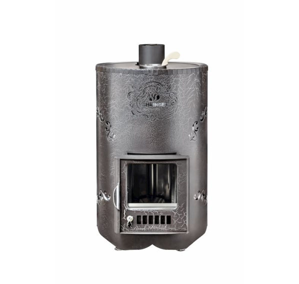 Колосниковая решетка в этой печи для бани на дровах отсутствует. Заложенные дрова разжигают сверху. Не имея над собой препятствий, огонь сразу передает тепло каменке. Пламя постепенно спускается, каждый слой дров прогорает полностью. Система Vortex создает вихревые газовые потоки, не дает пламени подниматься в дымоход. Такие инженерные решения обеспечивают печи высокий КПД, топливо расходуется экономно и эффективно.