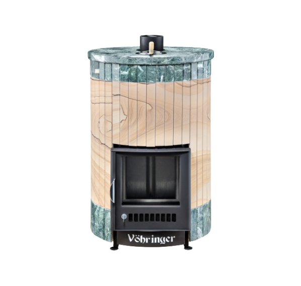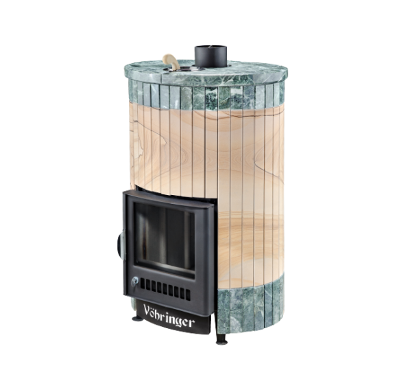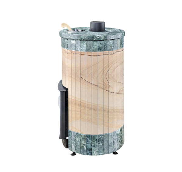 Банная печь Ферингер Уют-18 ПФ Окаменевшее дерево перенесенный рисунок + Змеевик