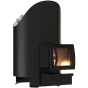 - Дровяная печь может топиться как непосредственно из парной, так и из соседнего помещения, для этого предусмотрена топка с выносом. Контролировать пламя, не вмешиваясь в процесс горения, удобно благодаря дверце со стеклом.