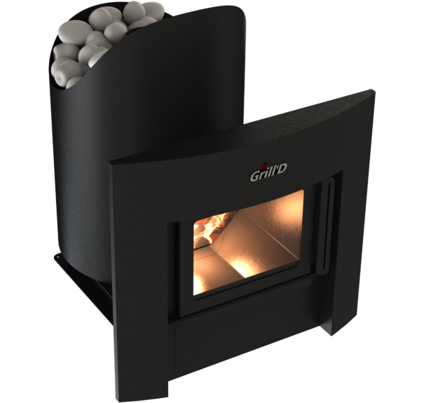 Дровяная печь для бани “Aurora 180 Window” от российского бренда Grill’D со стеклянной дверкой относится к числу бюджетных моделей. Но несмотря на простоту оформления, она отличается долговечностью и высоким качество сборки. Металлические конструкции топки усилены в местах наибольшей тепловой нагрузки, а кожух выполнен из жаростойкого металла. Печка рассчитана на установку в классической парной или сауне объемом от 8 до 18 куб. метров. Высокой мощности печи хватает не только на быстрый нагрев помещения, но и на создание большого количества качественного пара. Особенностью модели является дверца с большой рамкой, имитирующей каминный портал.