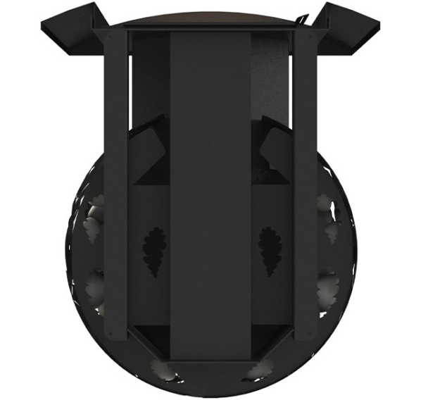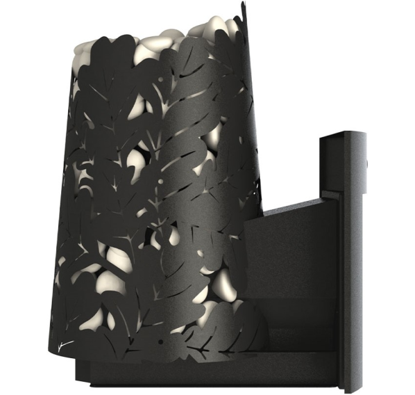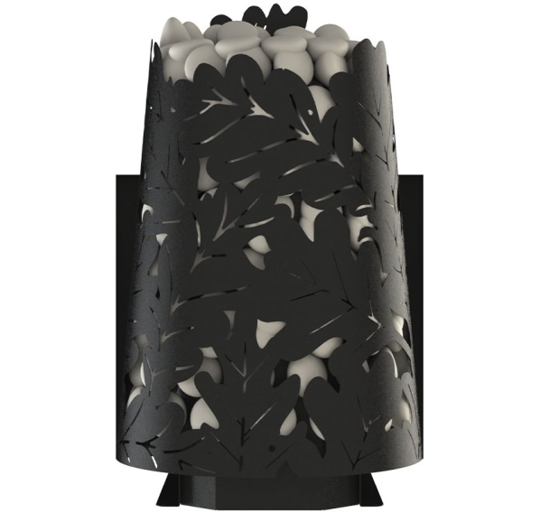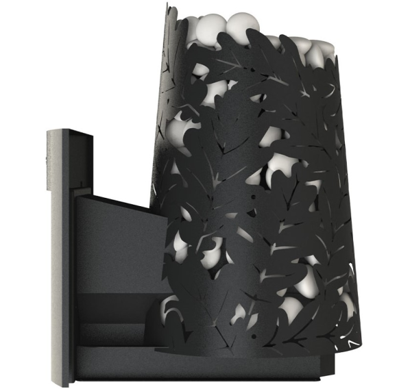 - Резной кожух с узором в виде дубовых листьев надежно удерживает большой объем камней.