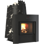 - Топка с выносом позволяет контролировать горение из соседнего с парной помещения.