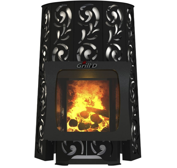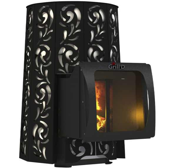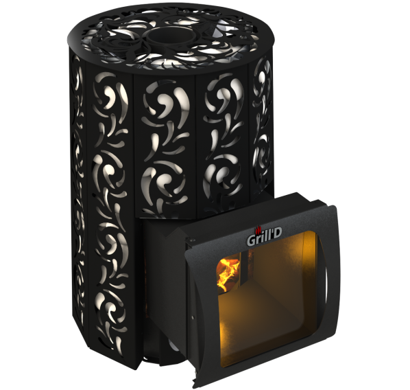 Дровяная печь для бани “Violet Short Window Max” с большим стеклом от российского бренда Grill’D сразу привлекает внимание, никого не оставляя равнодушным. Эффектное оформление корпуса навеяно знакомыми всем с детства фольклорными мотивами. За декоративным корпусом скрывается серьезная начинка: закрытая каменка способна нагреваться до 400 градусов и генерировать мелкодисперсный пар высокого качества, идеальный для классической русской парной. Печи серии “Виолет” рассчитаны на длительное использование: при условии грамотной эксплуатации они прослужат 10 и более лет.